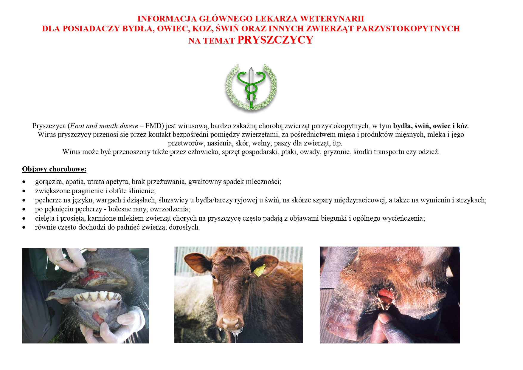 INFORMACJA ORAZ ZALECENIA GŁÓWNEGO LEKARZA WETERYNARII