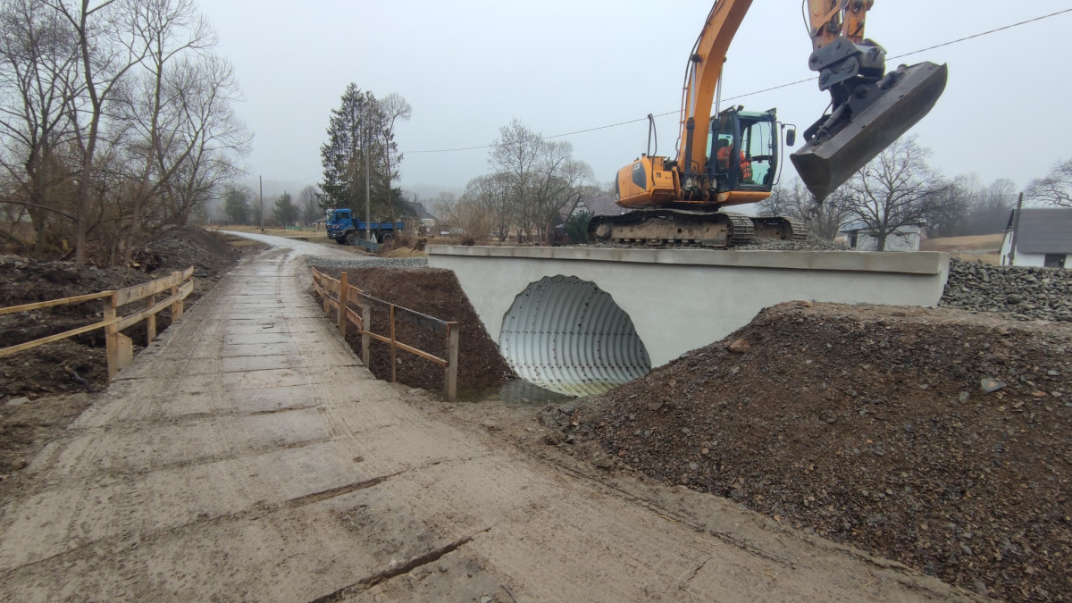 W ramach zadania wykonane zostaną zabezpieczenia skarp na wlocie i wylocie przepustu z kamienia łamanego, dno potoku przed przepustem oraz adaptacja drogi na dojazdach do przepustu.