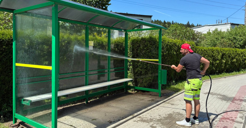 - mycie i czyszczenie wiat przystankowych, w tym wymiana zdewastowanych szyb