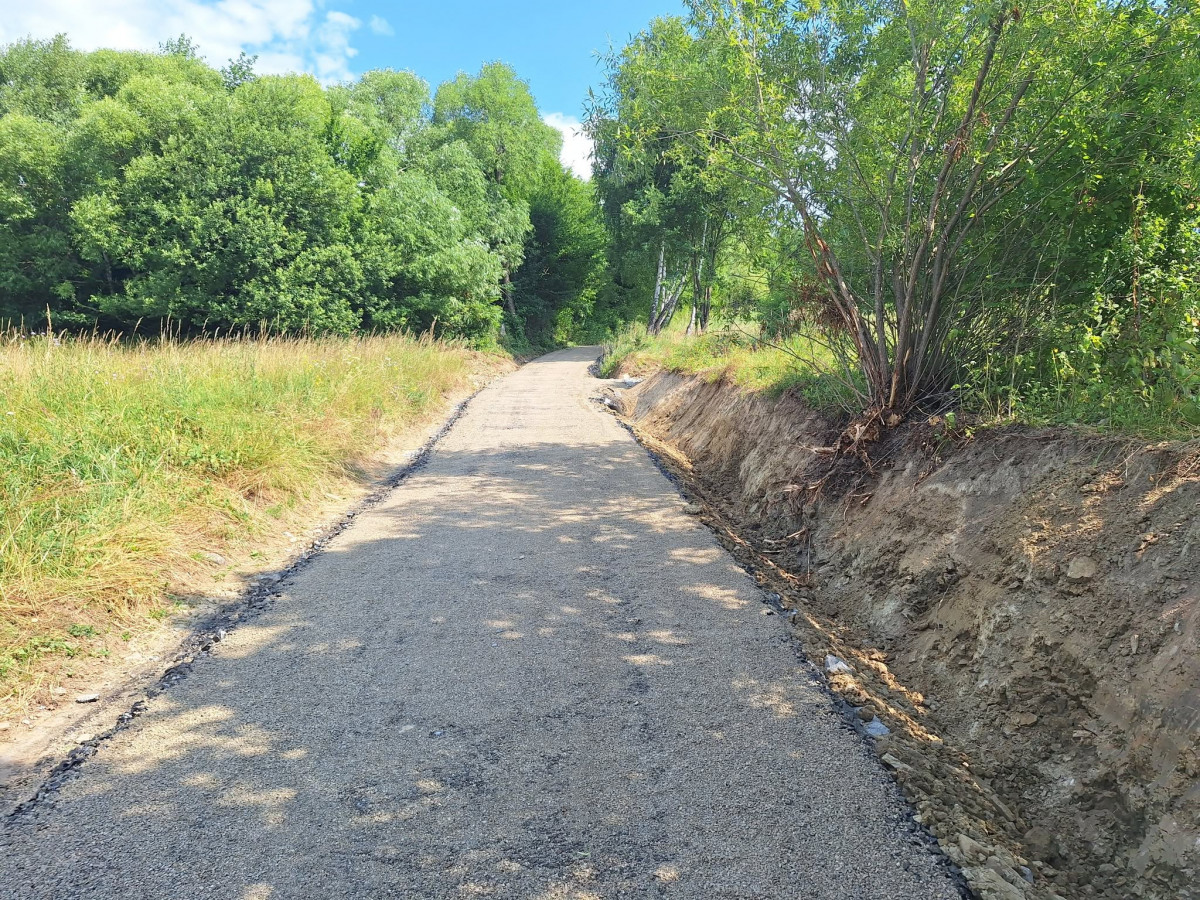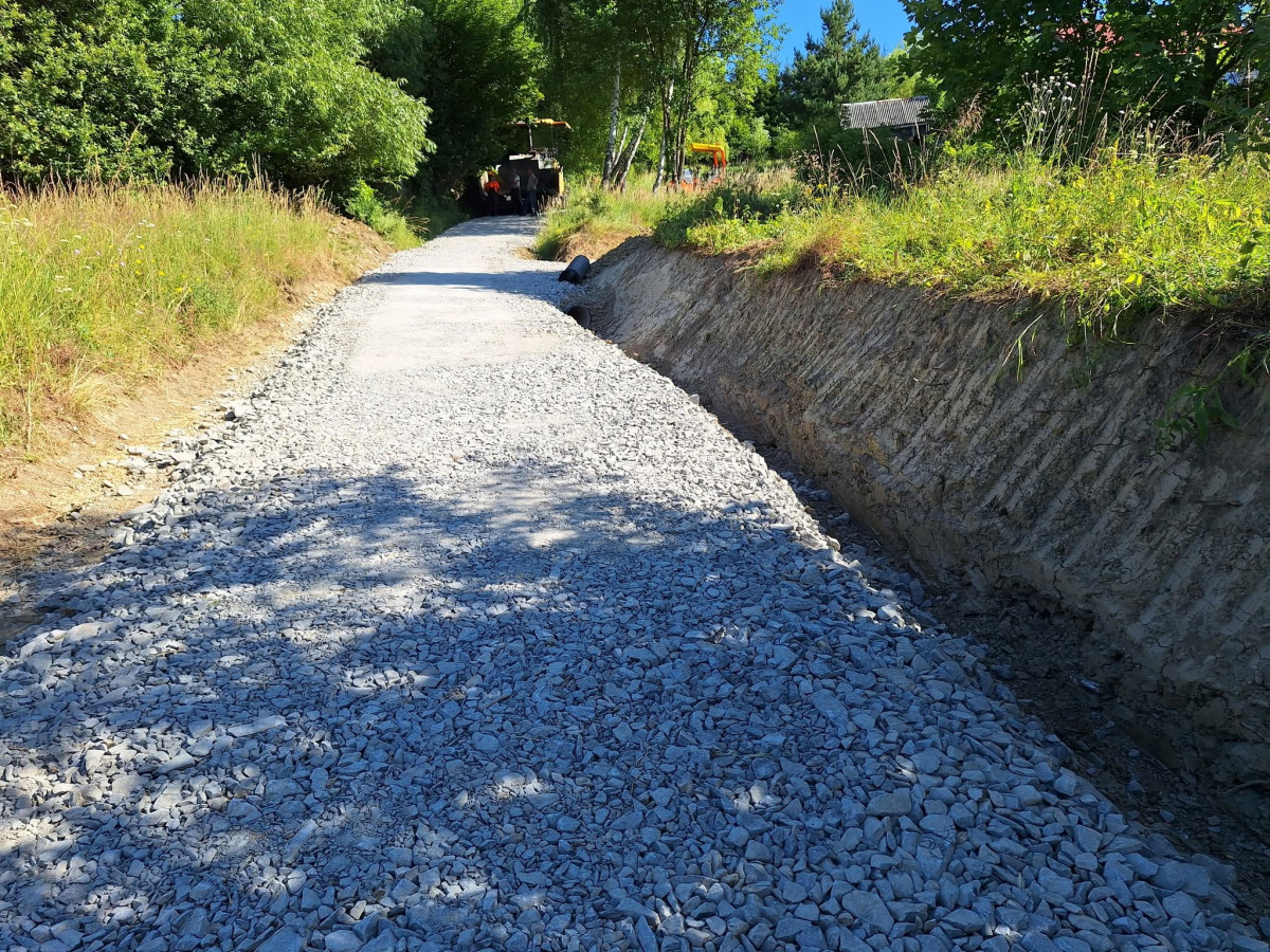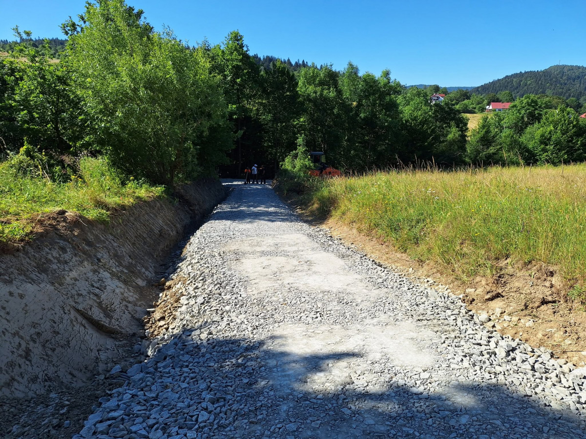 W ramach prac wykonano jezdnię o szerokości 3m z kruszywa łamanego powierzchniowo utrwalona emulsją asfaltową oraz odwodnienie przy pomocy rowu przydrożnego. Ponadto zakres robót do wykonania obejmował roboty pomiarowe przy liniowych robotach ziemnych, karczowanie zagajników, roboty ziemne, profilowanie i zagęszczenie podłoża pod warstwy konstrukcyjne nawierzchni, wykonanie podbudowy z warstw kruszywa łamanego, dwukrotne powierzchniowe utrwalenie nawierzchni drogowych emulsją asfaltową z kruszywem naturalnym, oznakowanie pionowe, montaż barier na przepuście oraz inwentaryzację geodezyjną powykonawczą.