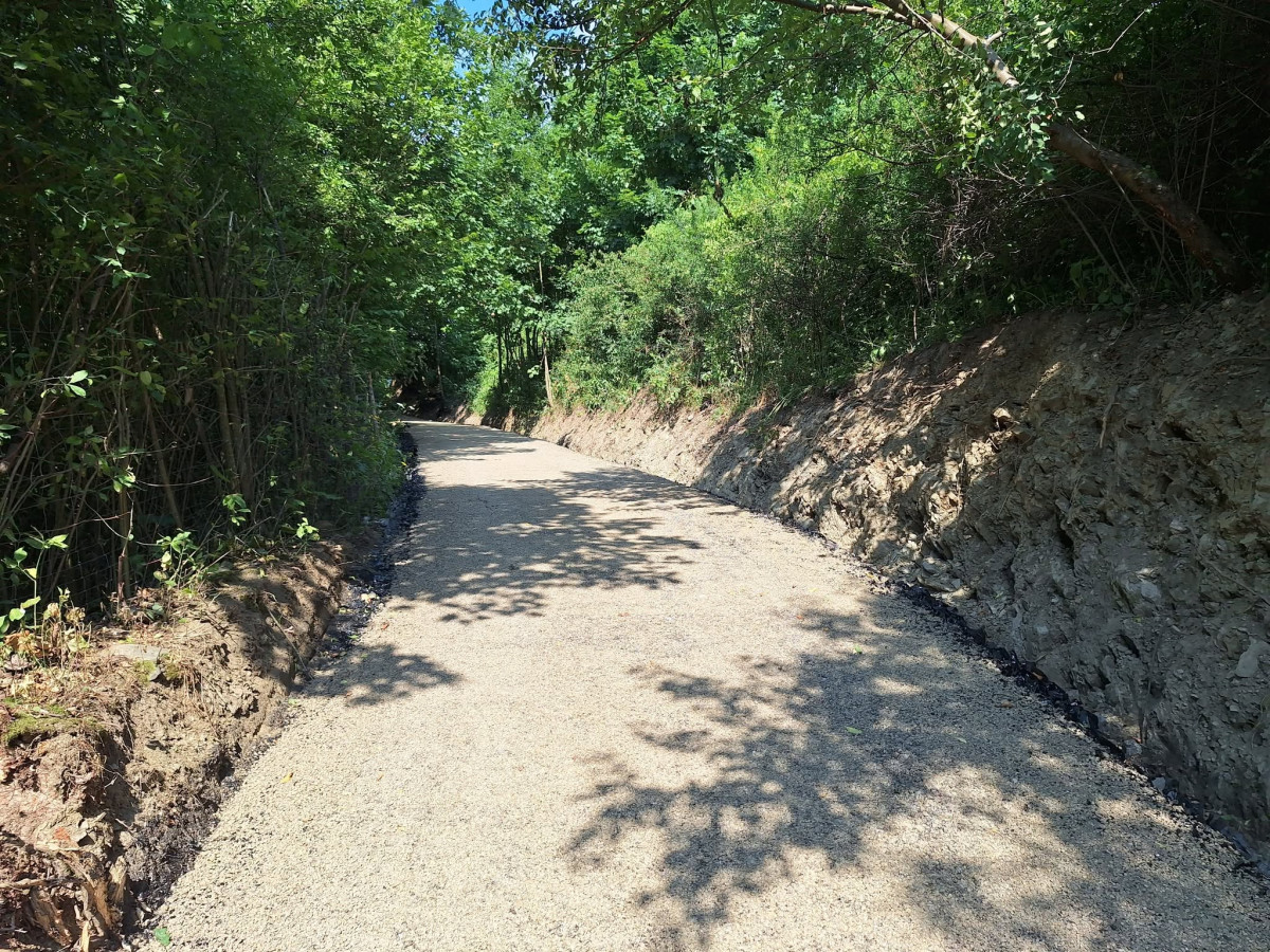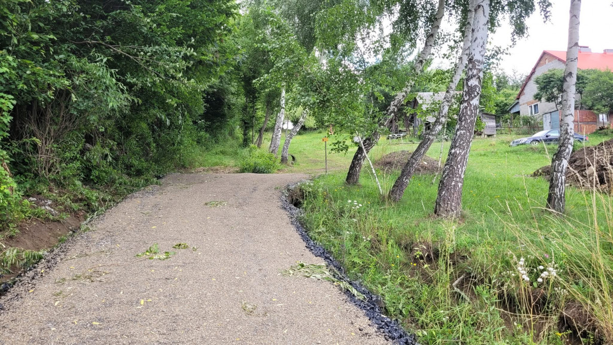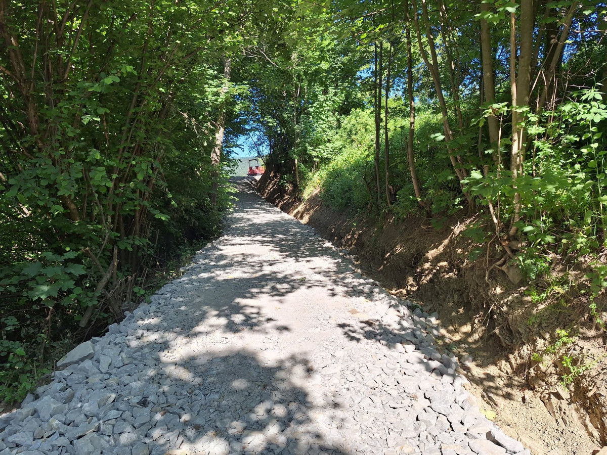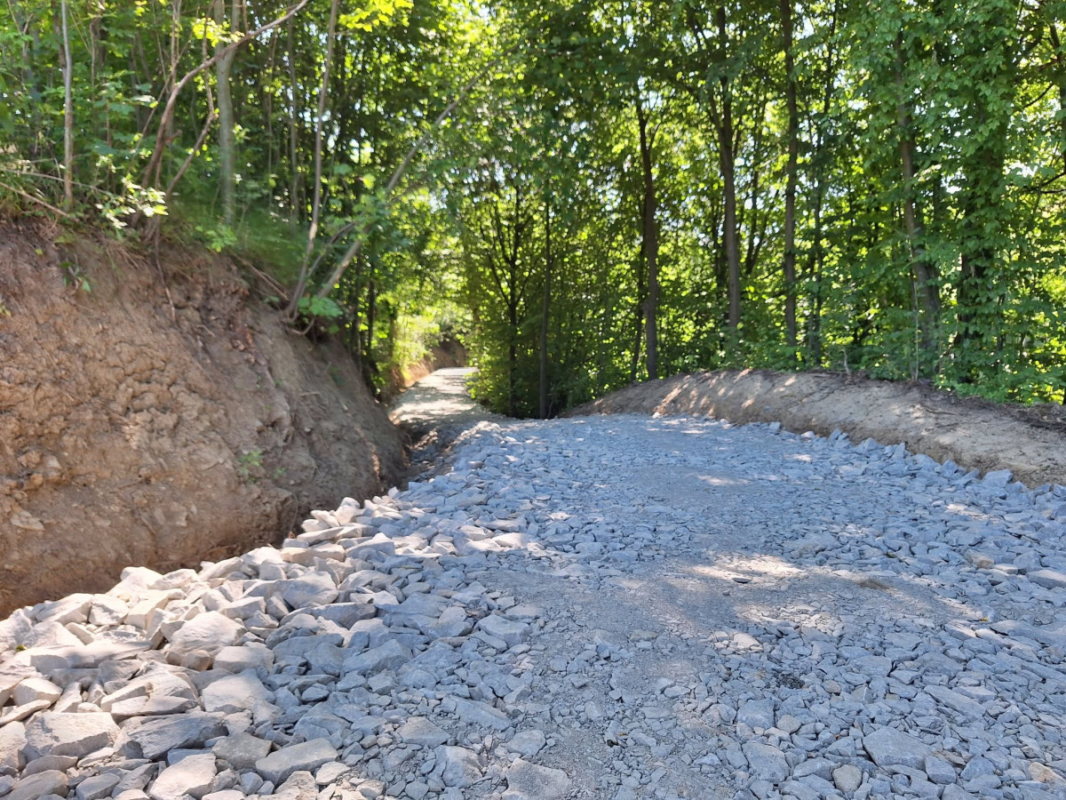 W ramach prac wykonano jezdnię o szerokości 3m z kruszywa łamanego powierzchniowo utrwalona emulsją asfaltową oraz odwodnienie przy pomocy rowu przydrożnego. Ponadto zakres robót do wykonania obejmował roboty pomiarowe przy liniowych robotach ziemnych, karczowanie zagajników, roboty ziemne, profilowanie i zagęszczenie podłoża pod warstwy konstrukcyjne nawierzchni, wykonanie podbudowy z warstw kruszywa łamanego, dwukrotne powierzchniowe utrwalenie nawierzchni drogowych emulsją asfaltową z kruszywem naturalnym, oznakowanie pionowe, montaż barier na przepuście oraz inwentaryzację geodezyjną powykonawczą.
