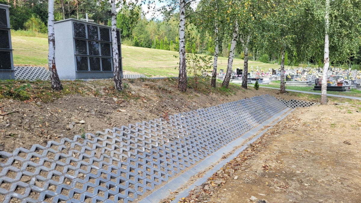 - regulacja odwodnienia, w tym prace estetyzujące oraz utwardzenie placu pod wiatę śmietnikową na cmentarzu komunalnym w m. RZEPEDŹ;