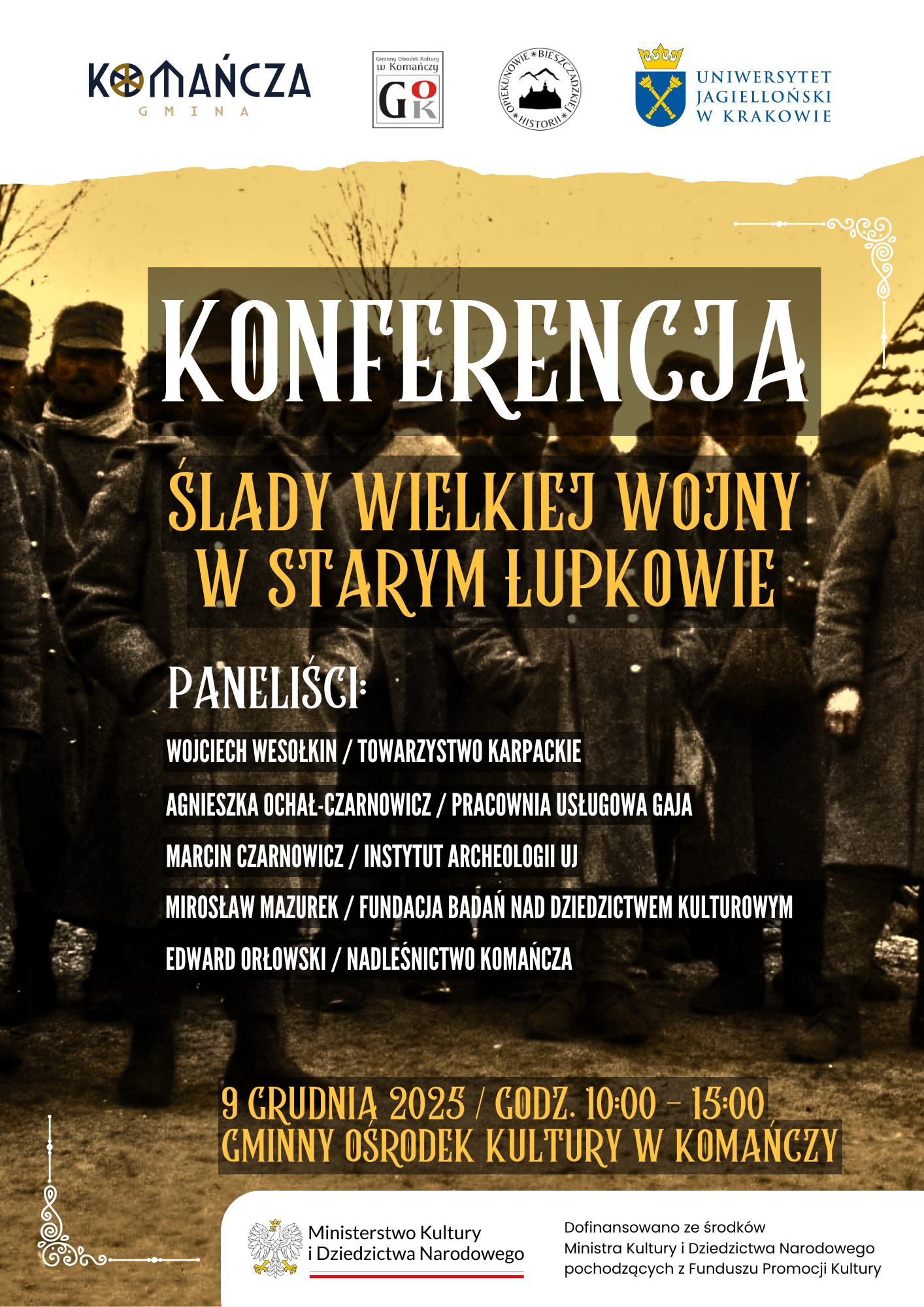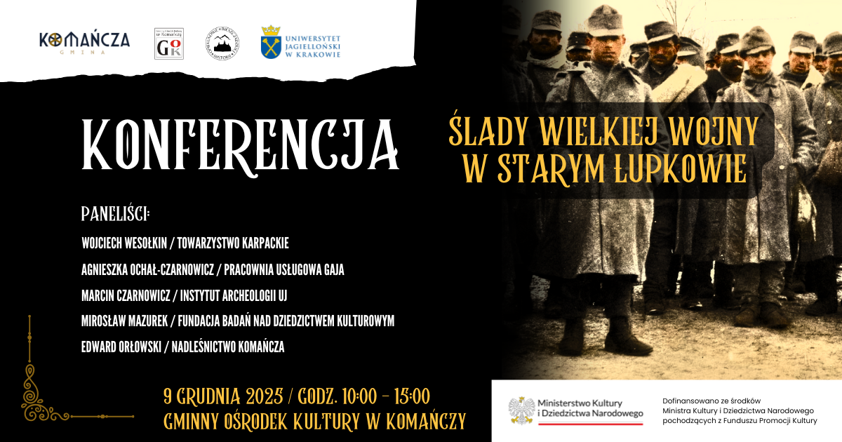 Gmina Komańcza zaprasza na konferencję poświęconą historii Starego Łupkowa oraz pamięci o żołnierzach I wojny światowej spoczywających na cmentarzu wojennym w tej miejscowości. Wydarzenie stanowi integralną część projektu „Przywracanie pamięci o poległych pochowanych na cmentarzu wojennym w Starym Łupkowie", którego celem jest ochrona i upamiętnienie tego wyjątkowego miejsca pamięci narodowej.