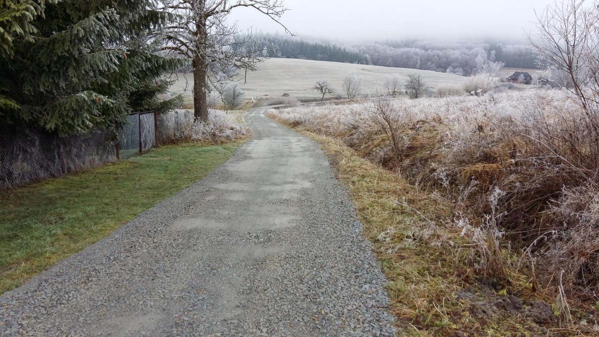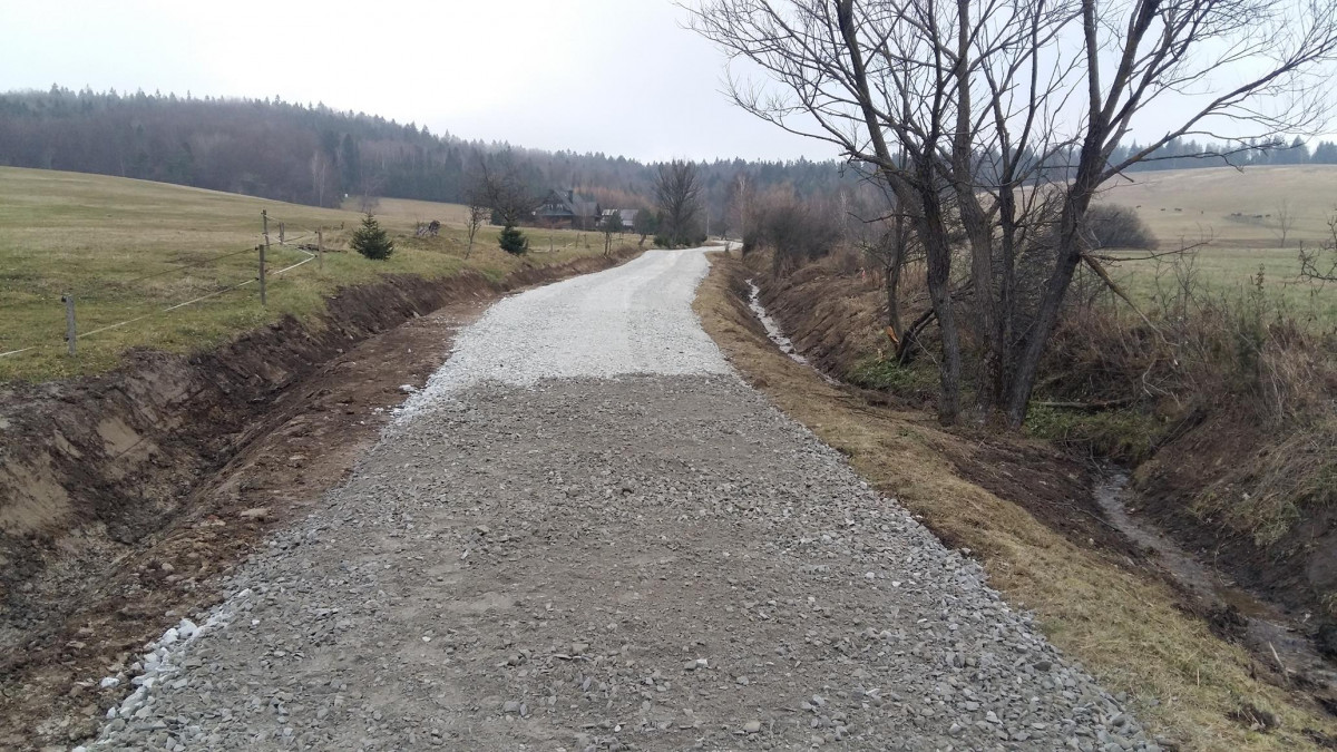W ramach zadania wykonano remont drogi o długosci 550 m o szerokości drogi 3,5 m polegajacy na odtworzeniu geodezyjnyym drogi, naprawie poboczy , wykonano odwodnienie drogi wraz z wlotami prefabrykowanymi , wykonano nową nawierzchnie dolna z kruszywa łamanego o grubosci po zagęszczeniu 10 cm oraz nawierzchnie górną z kruszywa łamanego o grubosci po zagęszczeniu 8 cm