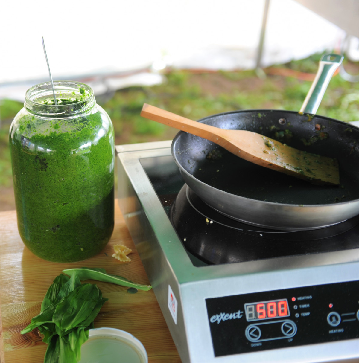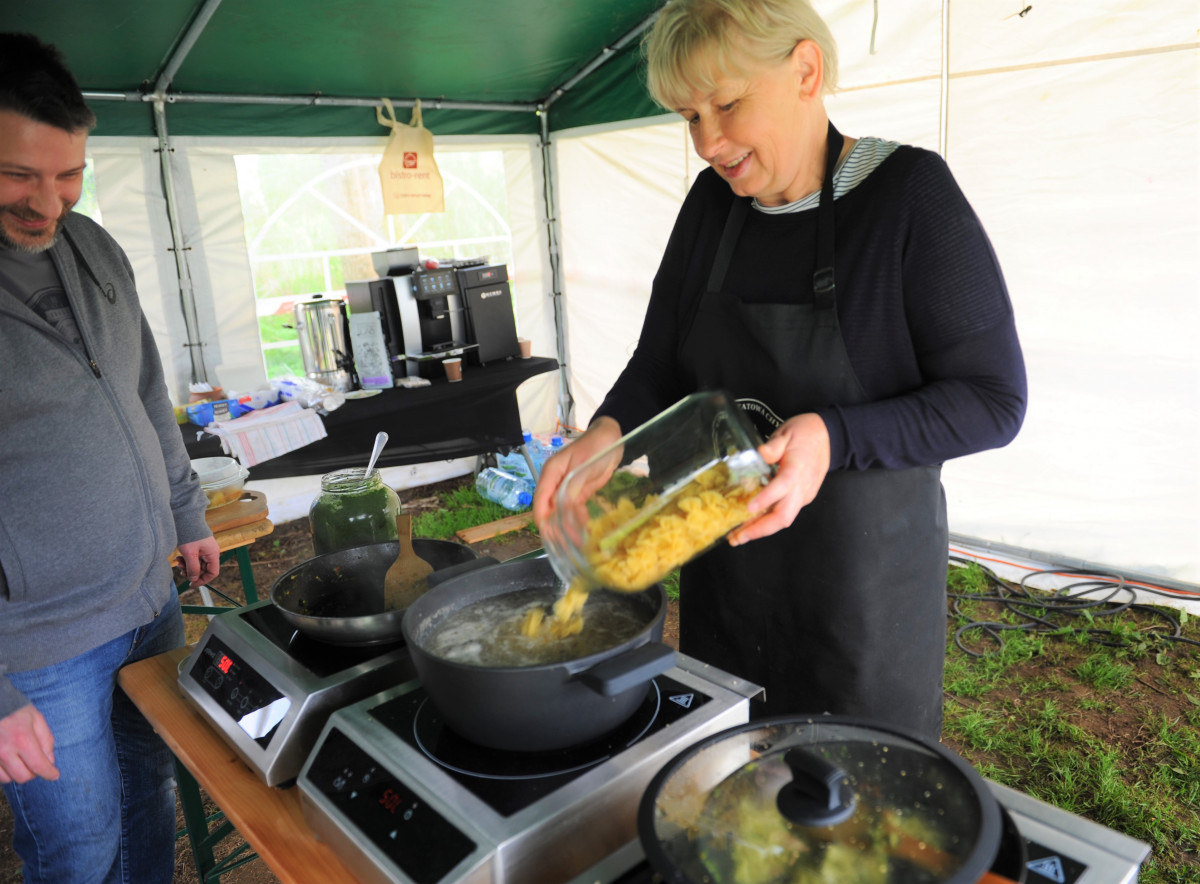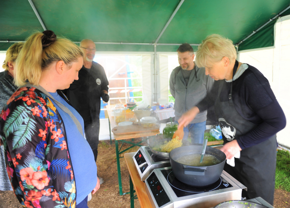 Uczestnicy imprezy mieli okazję zobaczyć, jak instruktorzy Wiesia i Bogdan z Bieszczadzkich Smaków przygotowują makaron z pesto z czosnku niedźwiedziego. Po prezentacji każda zainteresowana osoba miała możliwość rozwinąć swoje talenty kulinarne pod bacznym okiem ekspertów, poprzez samodzielne wykonanie potrawy.