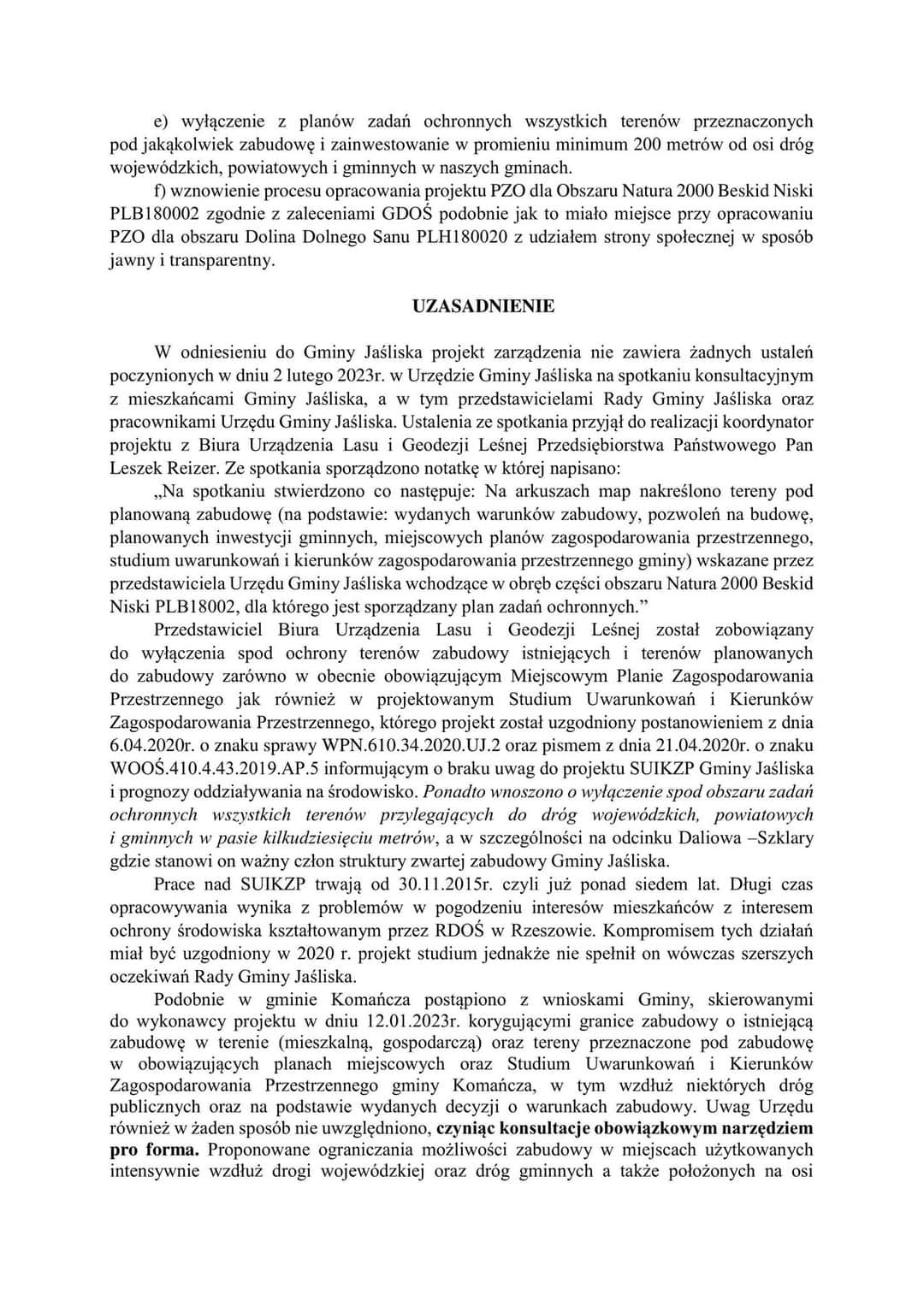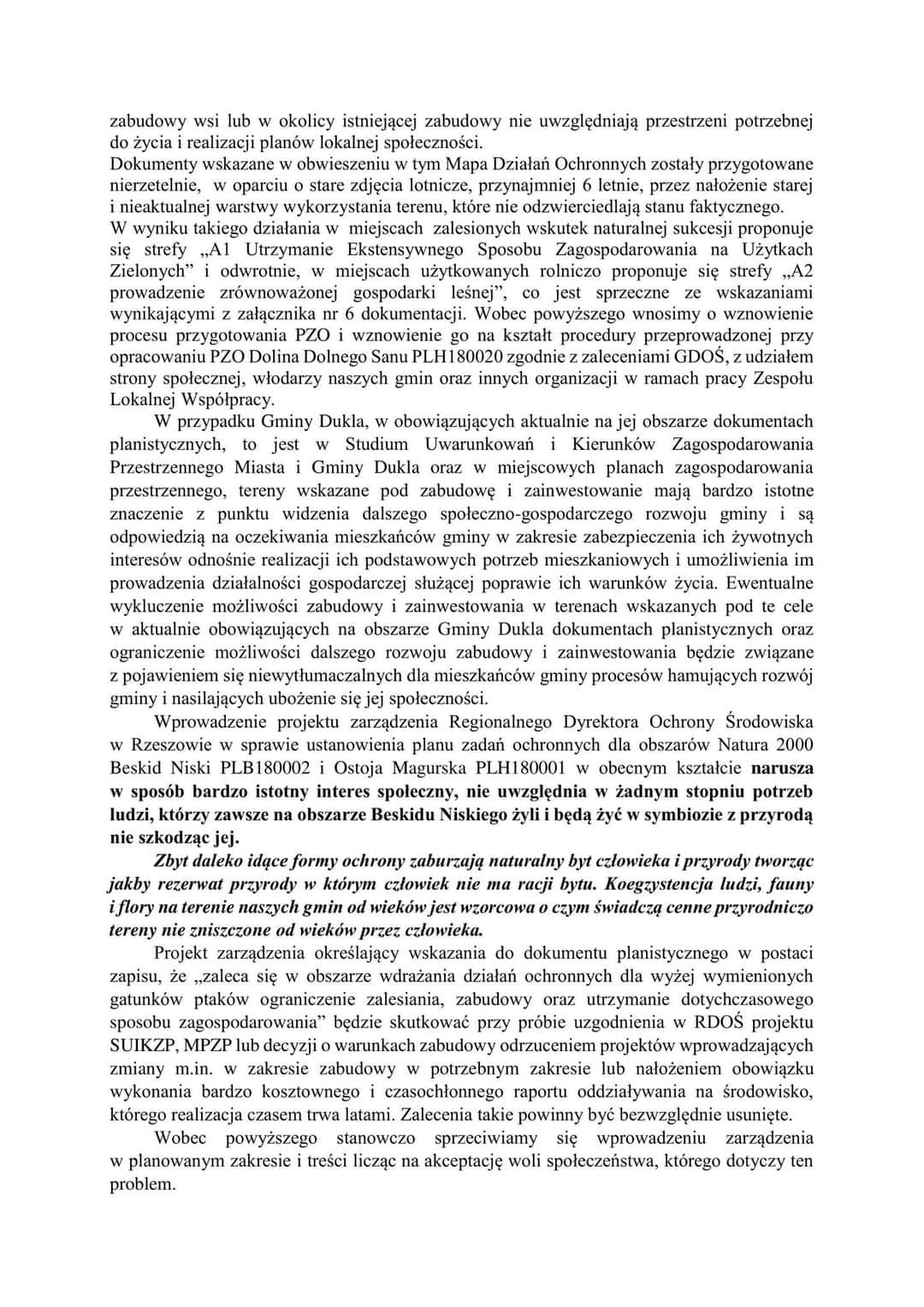 Petycja Gmin: KOMAŃCZA, JAŚLISKA i DUKLA w sprawie ustanowienia planów zadań ochronnych dla obszarów Natura 2000 Beskid Niski PLB180002