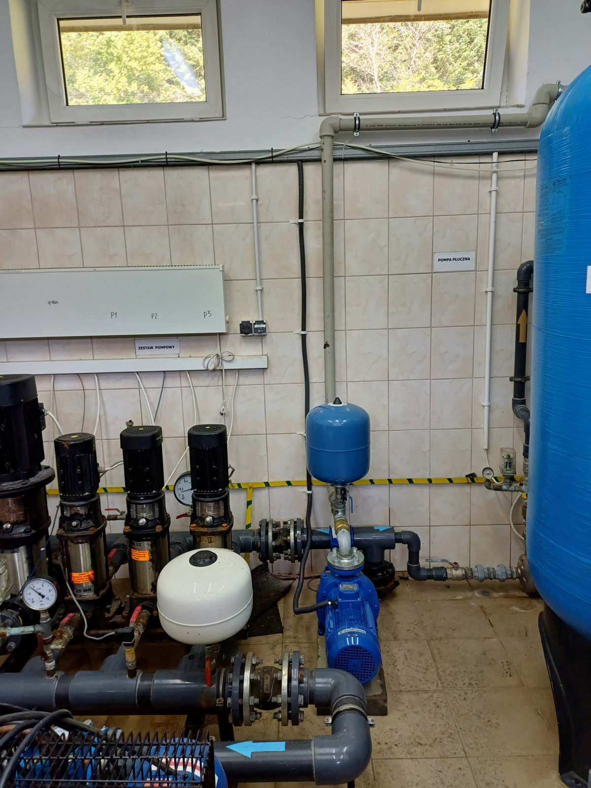 - na stacji Uzdatniania Wody w WISŁOKU WIELKIM złoże filtrujące ujęcia brzeżnego, filtra pośpiesznego drugiego stopnia wraz ze złożem, pompy płucznej, automatu dozowania chloru wraz z sondą Cl, w tym komplet pomiarowy AH, montaż wentylatora / osuszacza.