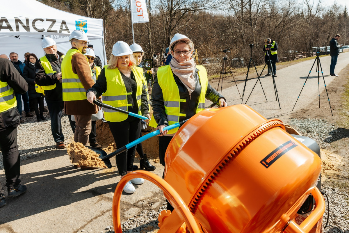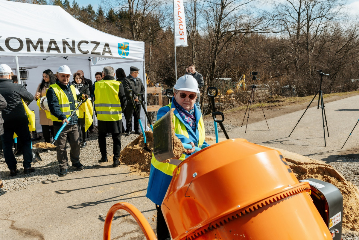 Symbolicznego wbicia łopaty - nabrania łopatą piasku i wrzucenie go do betoniarki celem przygotowania mieszanki betonowej i zaprawy pod kamień węgielny pod budowę mostów dokonali: