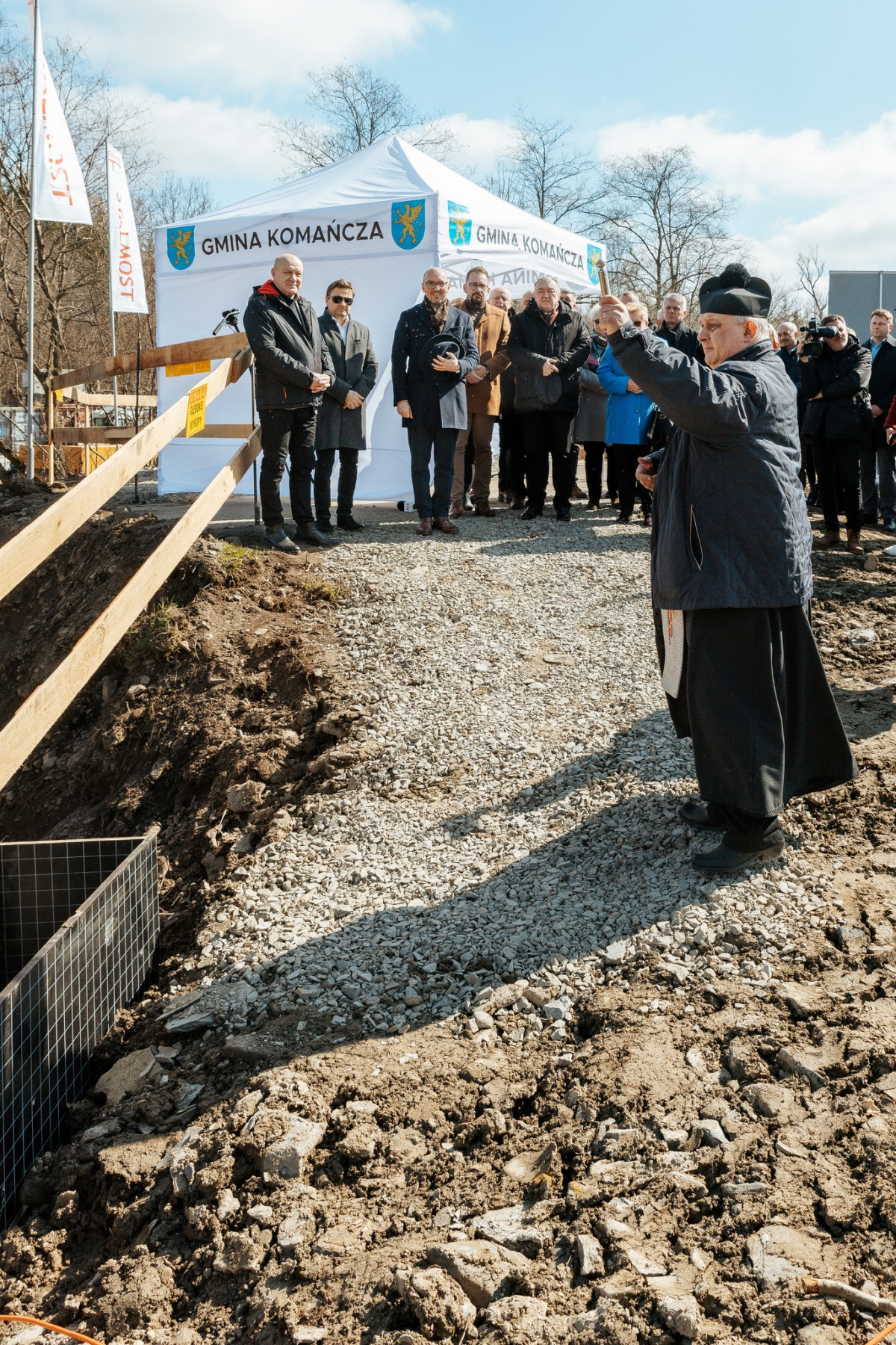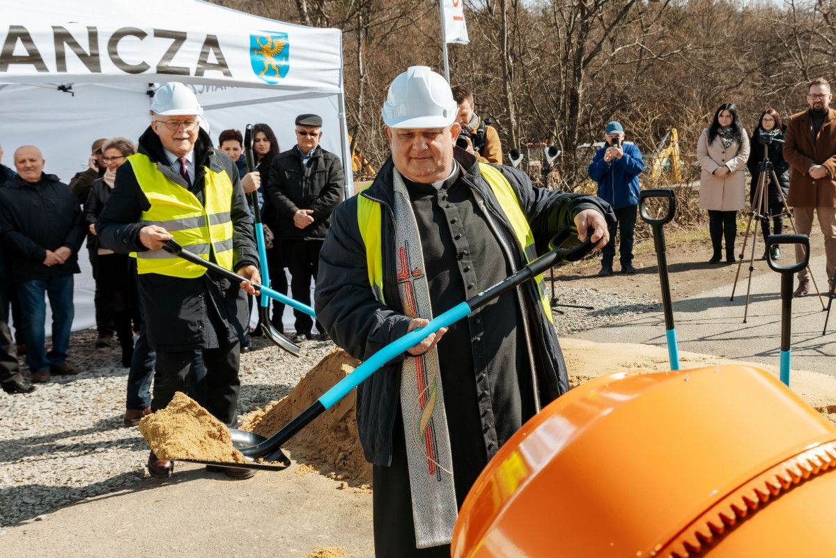 Następnie plac budowy został poświęcony przez ks. Piotra BIELÓWKĘ, Proboszcza Parafii Rzymskokatolickiej pw. Świętych Apostołów Piotra i Pawła w Nowym Łupkowie.