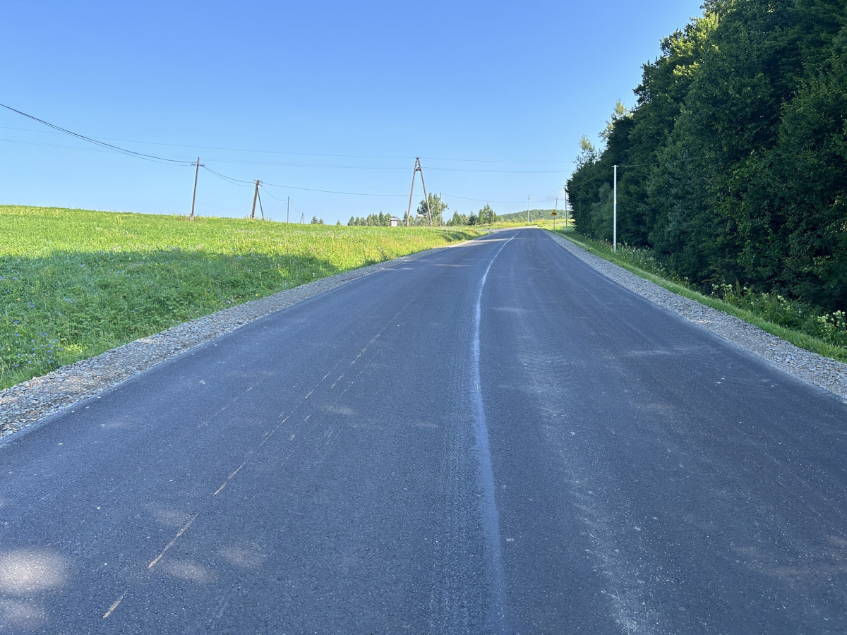 Zakres prac obejmował rozbiórkę elementów drogi i oczyszczenie nawierzchni, skropienie nawierzchni asfaltem, wyrównanie kolein i deformacji, wykonanie nawierzchni z mieszanek mineralno-bitumicznych oraz wykonanie poboczy kruszywem.