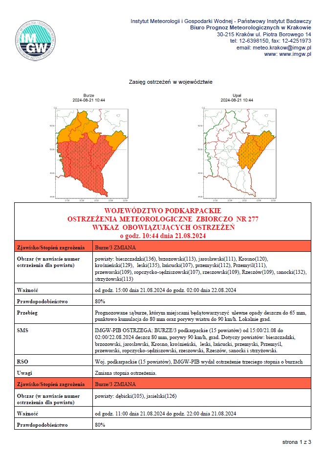 OSTRZEŻENIE III STOPNIA O BURZACHData publikacji: 2024-08-21WydrukujOdczytajPauzaWznówStopOdczytywanie w toku...Przygotowywanie...